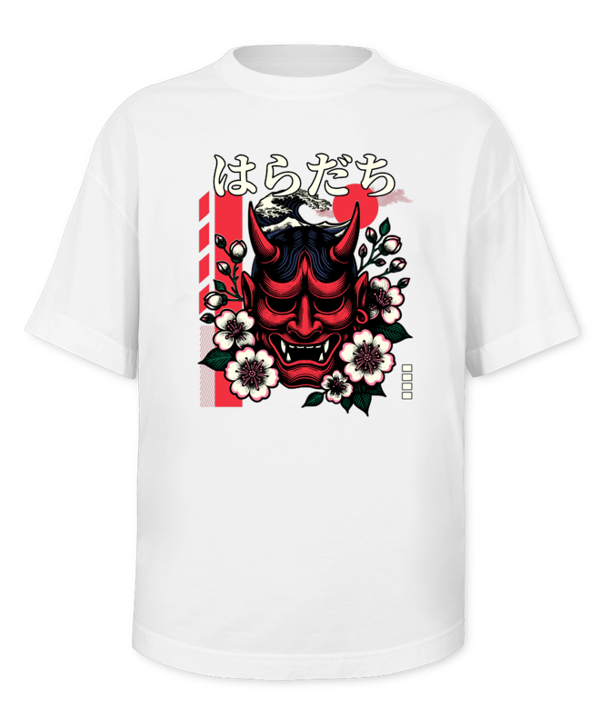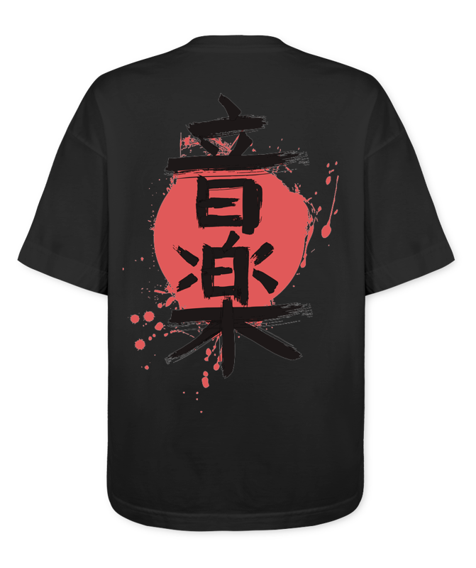 Camiseta Super Oversized - [Estampa Japonesa, Caligrafia Artística, Círculo Vermelho, Sol Nascente, Design Minimalista, Pinceladas Dinâmicas, Arte Expressiva, Caracteres Japoneses, Significado Música, Estética Oriental, Cultura Japonesa.]