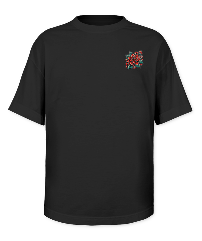 Camiseta Super Oversized - [Estampa Japonesa, Caligrafia Artística, Círculo Vermelho, Sol Nascente, Design Minimalista, Pinceladas Dinâmicas, Arte Expressiva, Caracteres Japoneses, Significado Música, Estética Oriental, Cultura Japonesa.]